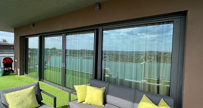 Nagy üvegfelületek és akadálymentes átjárás: könnyű futású, jól tömített tolóajtó-megoldások, amelyek tágasabb térérzetet és megbízható hőmegtartást biztosítanak.