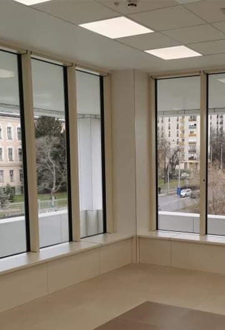 Keskeny látszó szélességű, nagy teherbírású alumínium ablakok modern homlokzatokhoz, hőhídmentes profilokkal, kiemelkedő tartóssággal és letisztult megjelenéssel.